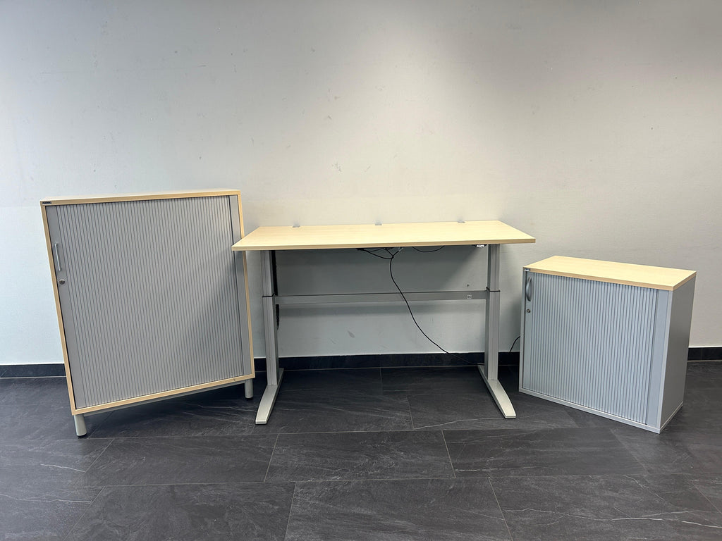 Marke und Modell: Der Aktenschrank stammt aus der renommierten Produktlinie von Ceka, einem angesehenen Hersteller von hochwertigen Büromöbeln. Der Rolladenschrank bietet eine elegante und platzsparende Lösung zur Aufbewahrung Ihrer Unterlagen.