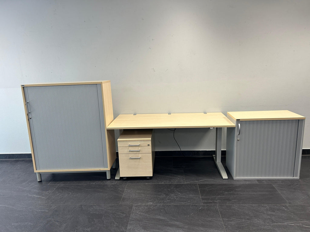 Farbe und Material: Der Schrank ist in einem stilvollen Ahorn-Finish gehalten, das sich nahtlos in verschiedene Büroeinrichtungen integriert und eine warme, natürliche Optik verleiht. Die robuste Bauweise und die hochwertige Verarbeitung garantieren Langlebigkeit und Widerstandsfähigkeit.