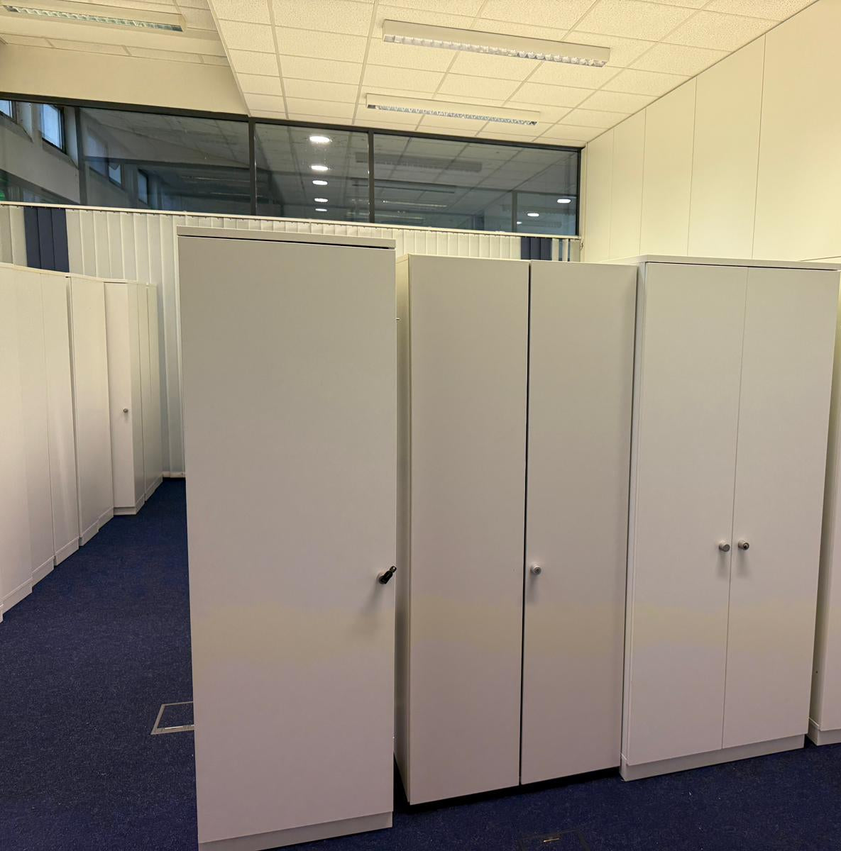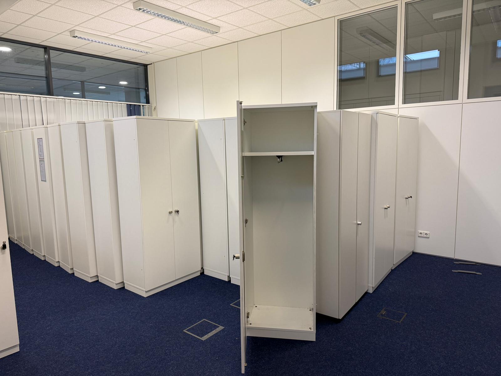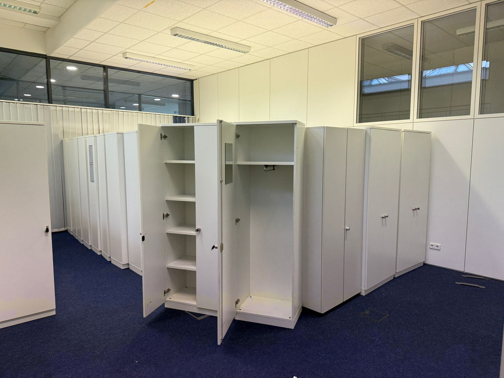 Der Schrank ist gebraucht, befindet sich jedoch in einem guten Zustand und bietet eine kostengünstige Möglichkeit, Ihre Räume ordentlich und gut organisiert zu halten. Das schlichte, weiße Design fügt sich harmonisch in jedes Raumkonzept ein und sorgt für eine helle, freundliche Atmosphäre.