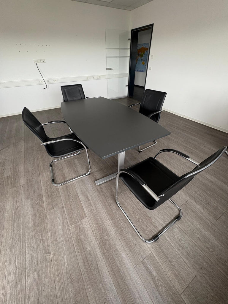 Der Konferenztisch in Anthrazit überzeugt durch modernes Design, stabile Verarbeitung und eine großzügige Arbeitsfläche. Mit den Maßen 160 x 90 cm bietet er ausreichend Platz für Meetings, Besprechungen oder Teamarbeit im Büro und Homeoffice.