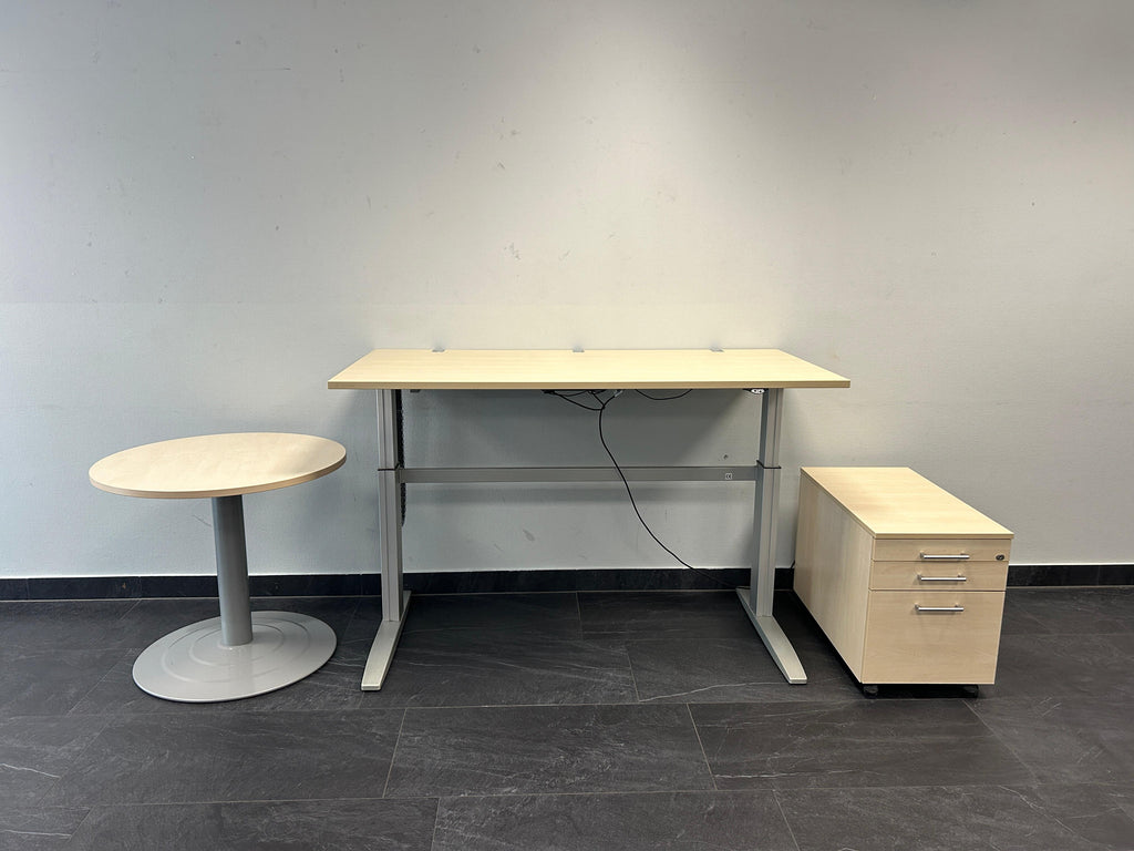 Design: Das klassische runde Design des Tisches fördert eine offene und kommunikative Atmosphäre, die ideal für Gruppendiskussionen und Teamarbeit ist. Die glatte Ahorn-Oberfläche sorgt für eine angenehme Haptik und einfache Pflege.