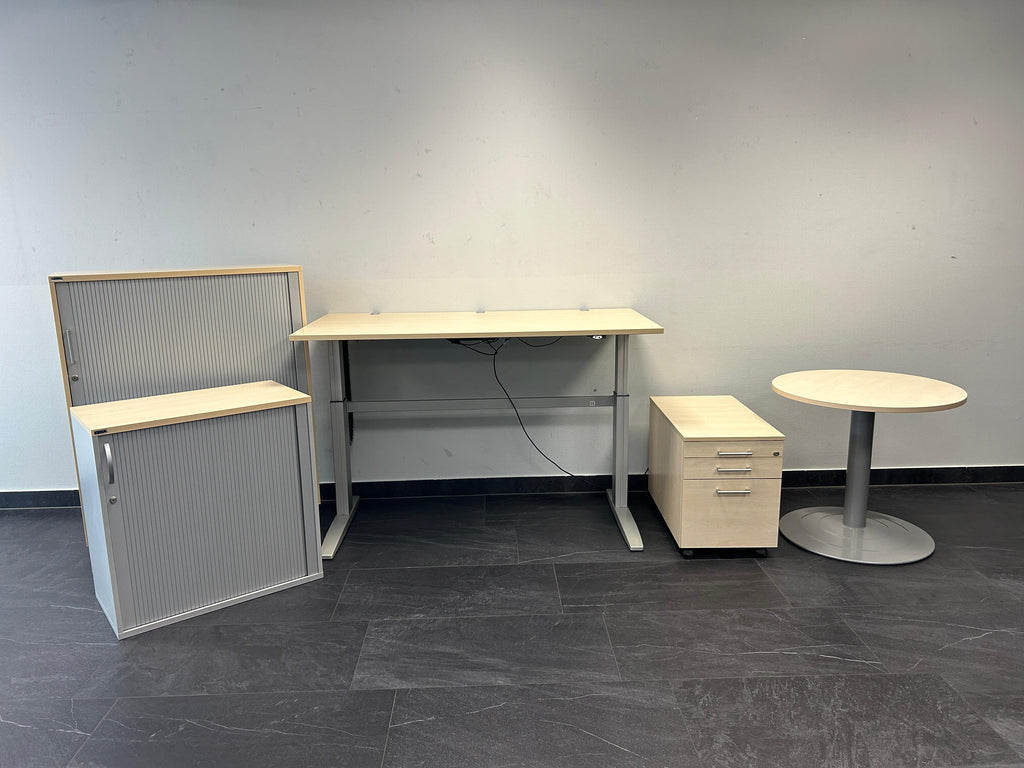 Der runde Konferenztisch in Ahorn mit einem Durchmesser von 100 cm bietet eine stilvolle und praktische Lösung für Ihre Besprechungsbedürfnisse. Trotz seines gebrauchten Zustands bietet der Tisch die klassische Eleganz und Qualität, die Sie für Ihr Büro suchen. Nutzen Sie diese Gelegenheit, um ein hochwertiges Möbelstück zu einem attraktiven Preis zu erwerben und Ihr Büro zu verschönern.