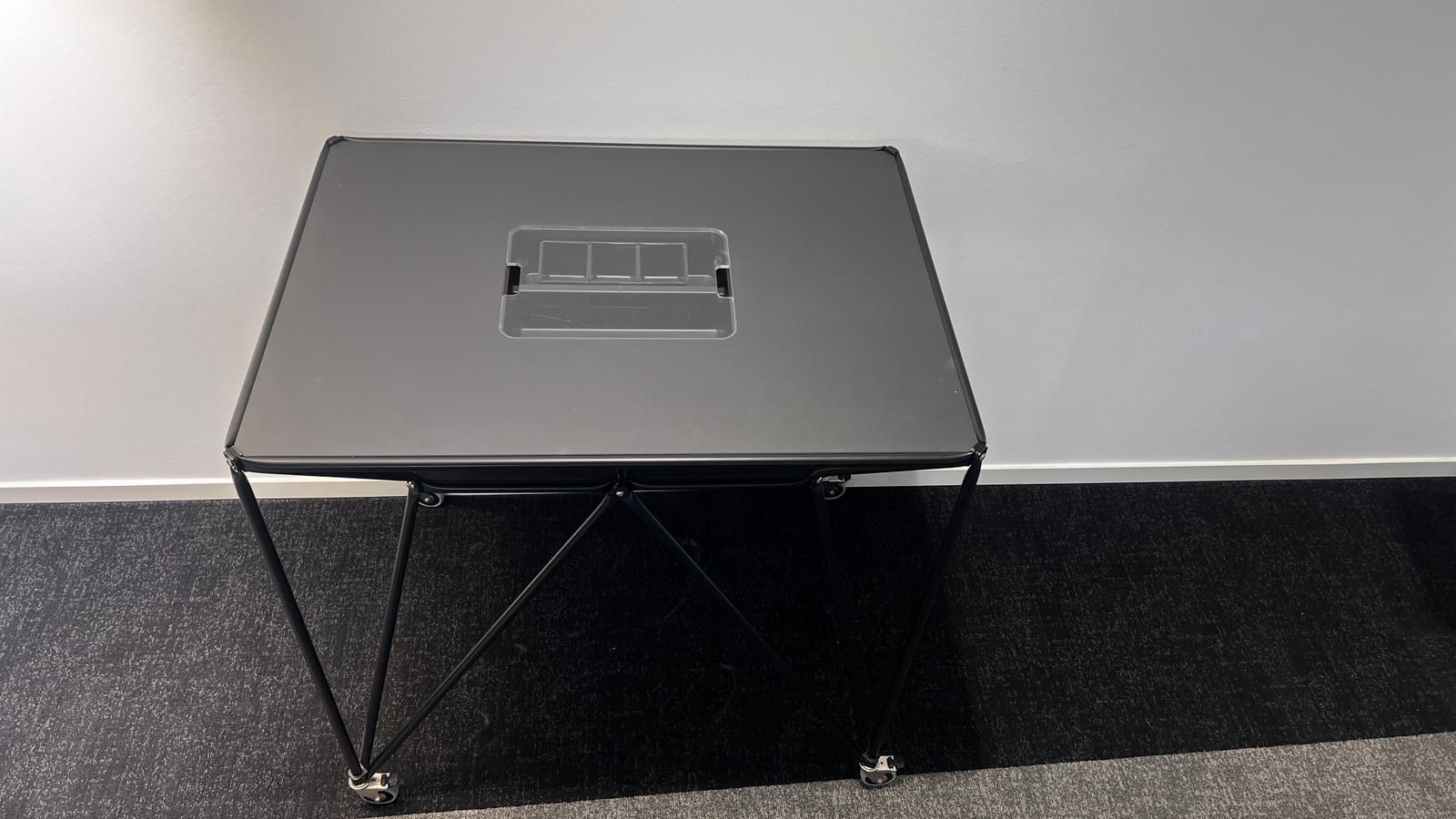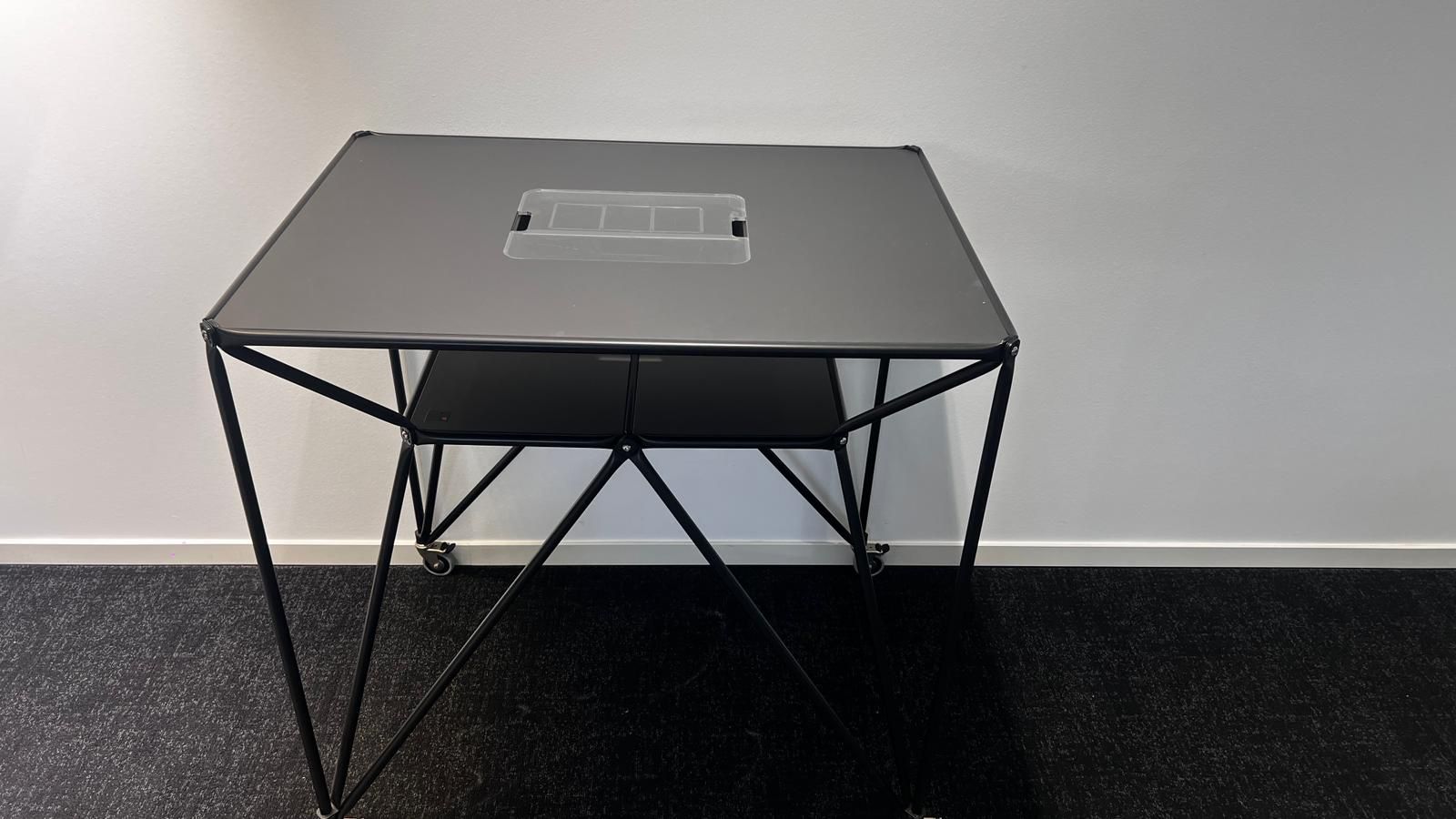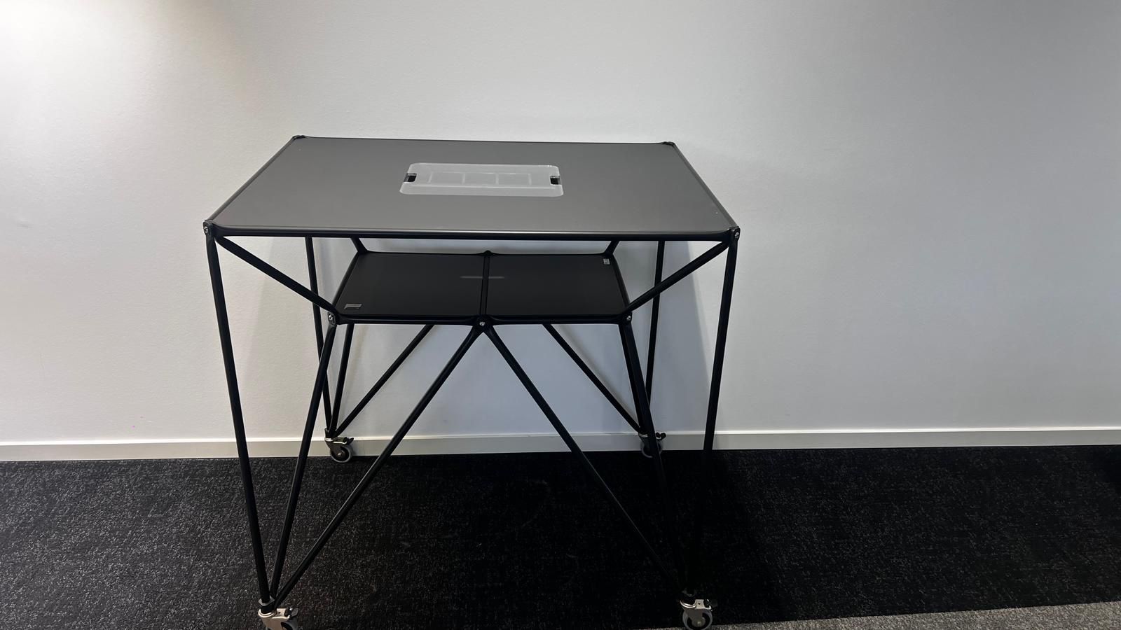 Ausstattung: Integrierte Staubox im Tisch, auf Rollen für flexible Nutzung