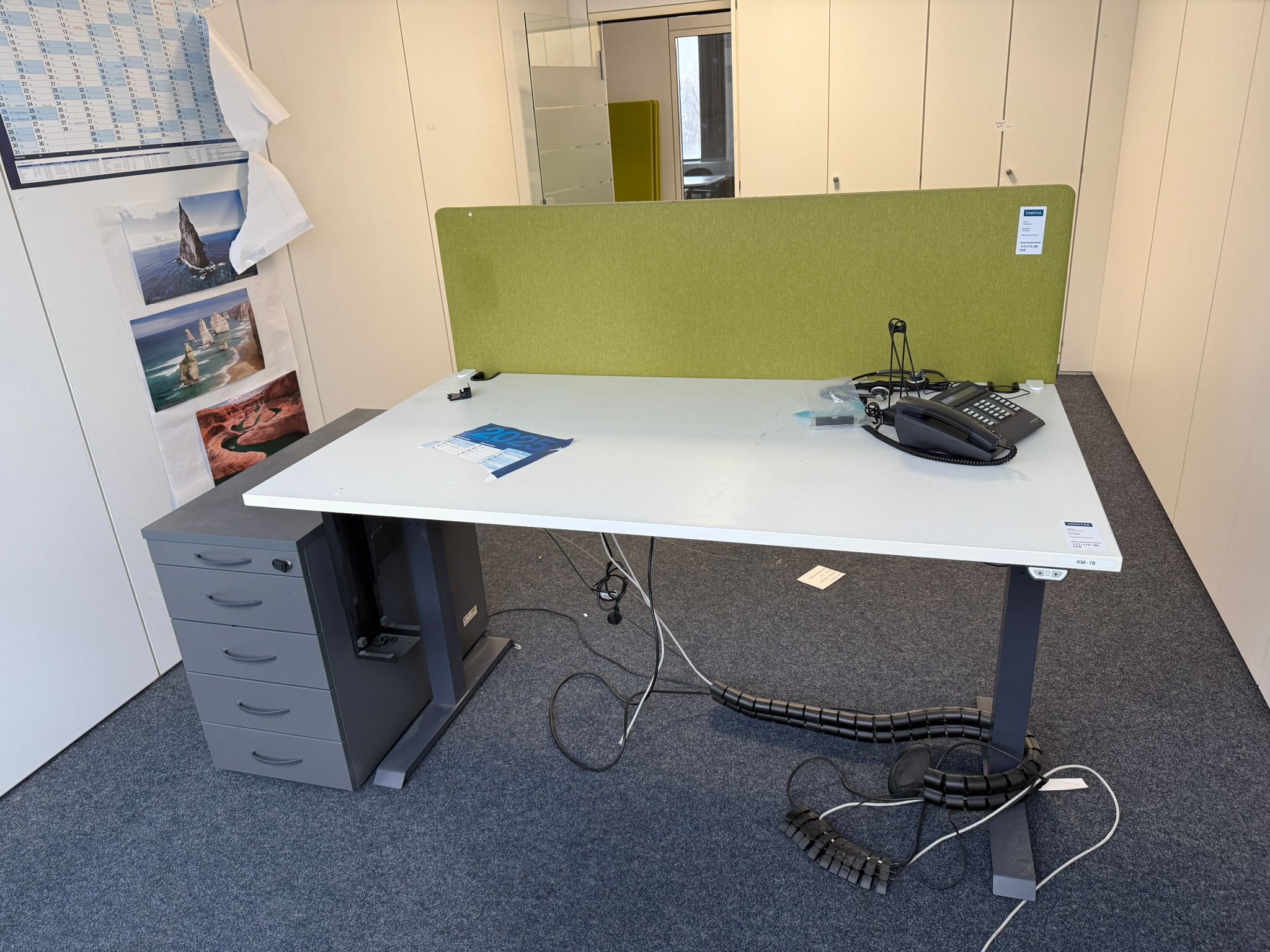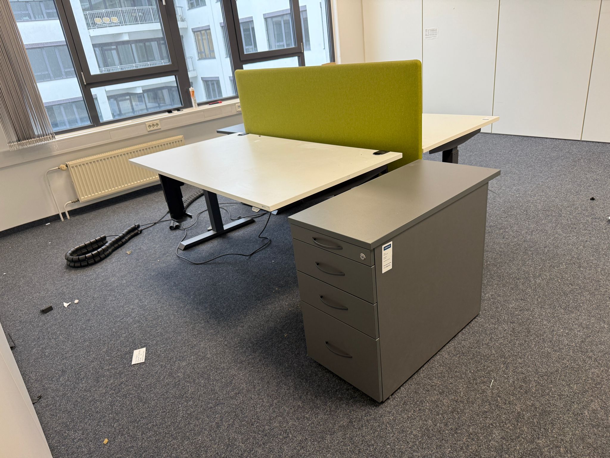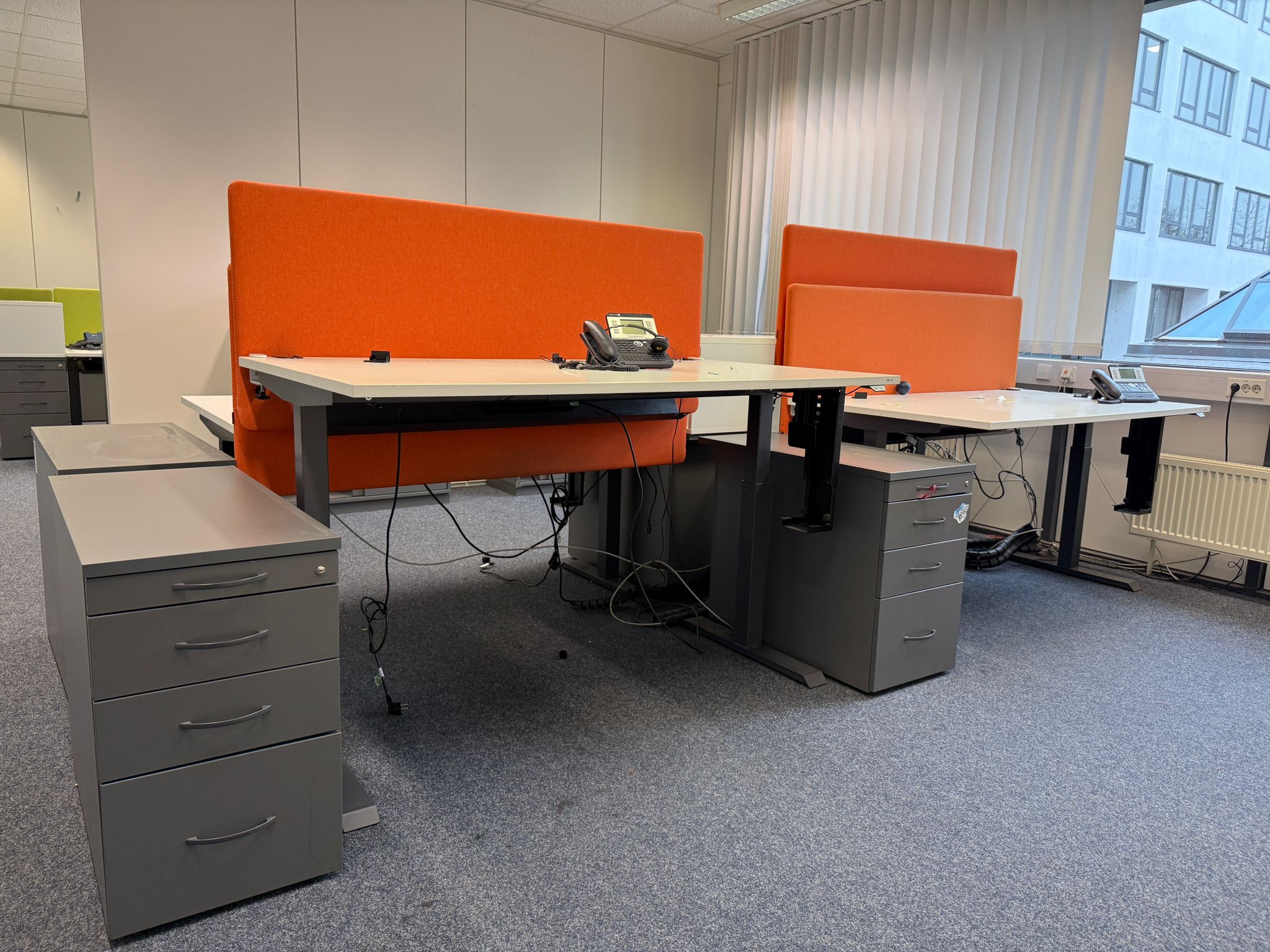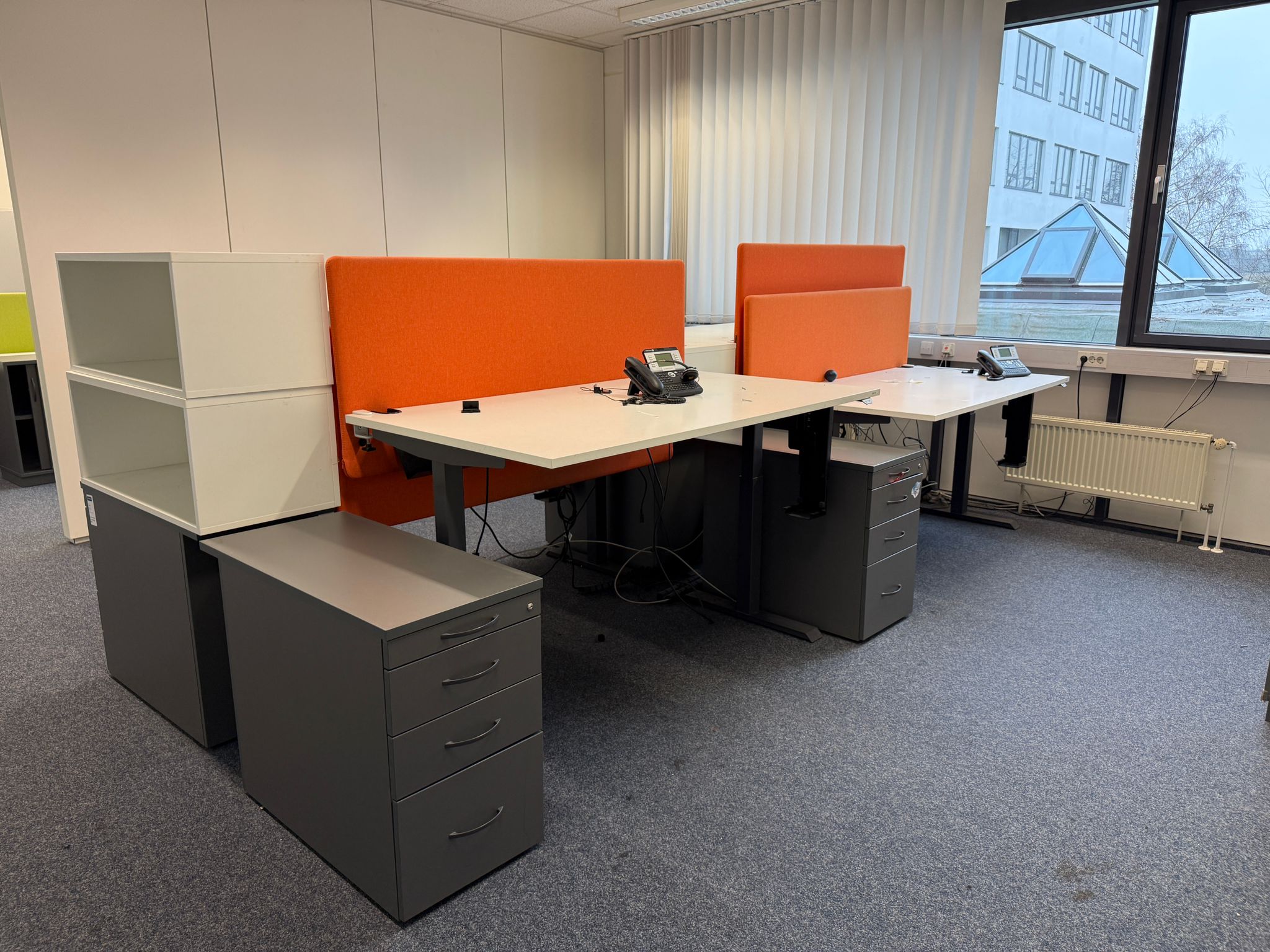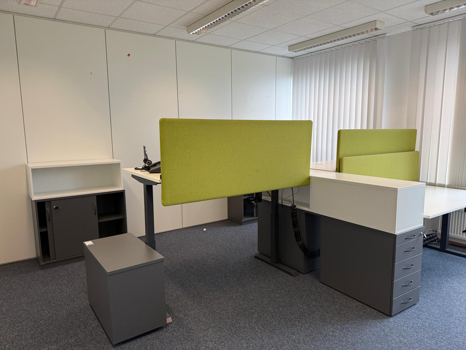 Die Trennwand ist in zwei frischen Farben – Orange und Grün – erhältlich, die Ihrem Raum eine lebendige und moderne Atmosphäre verleihen. Dank des gebrauchten, aber gepflegten Zustands bietet diese Trennwand eine kostengünstige und nachhaltige Möglichkeit, Ihre Arbeitsumgebung zu optimieren.