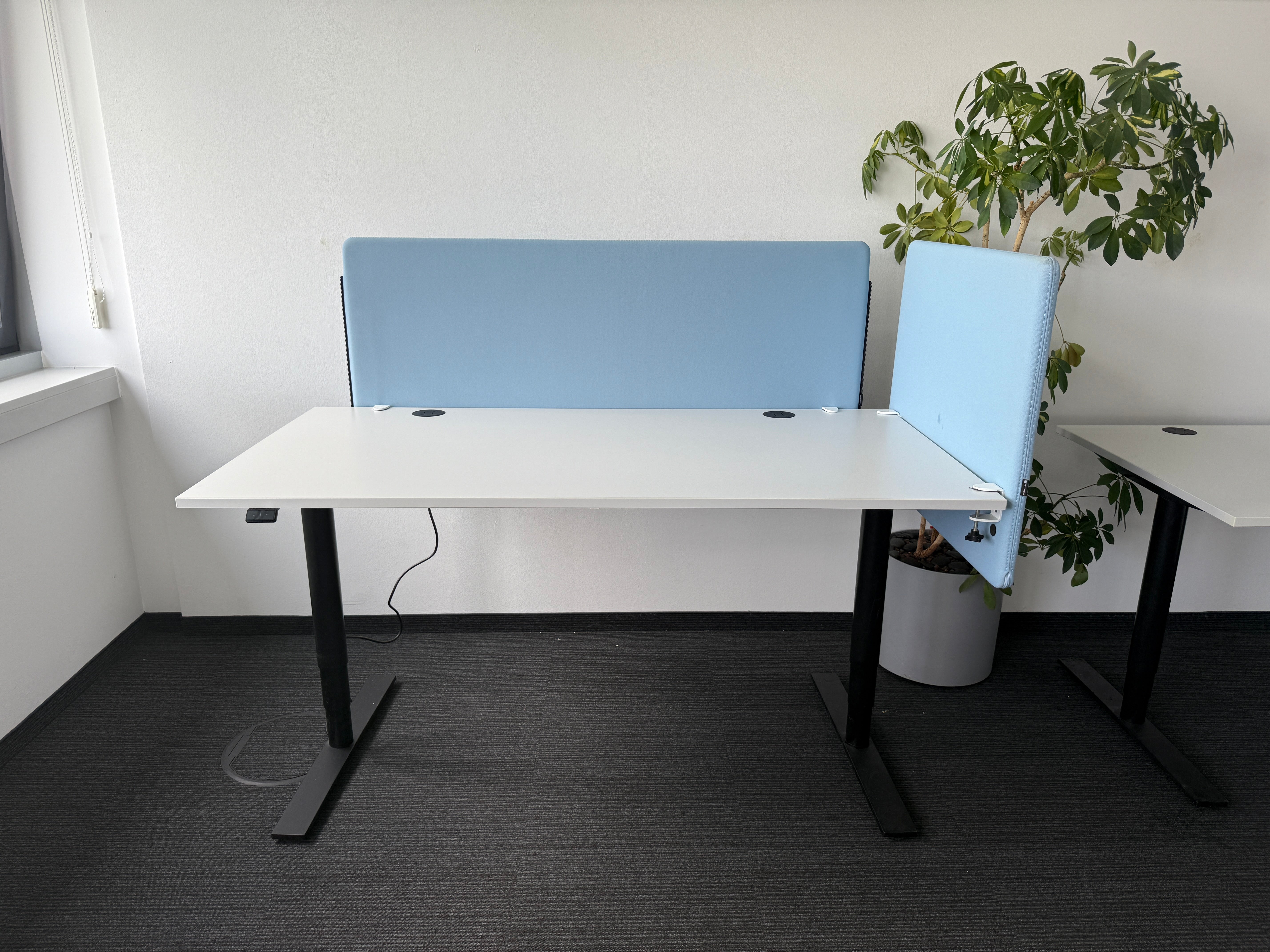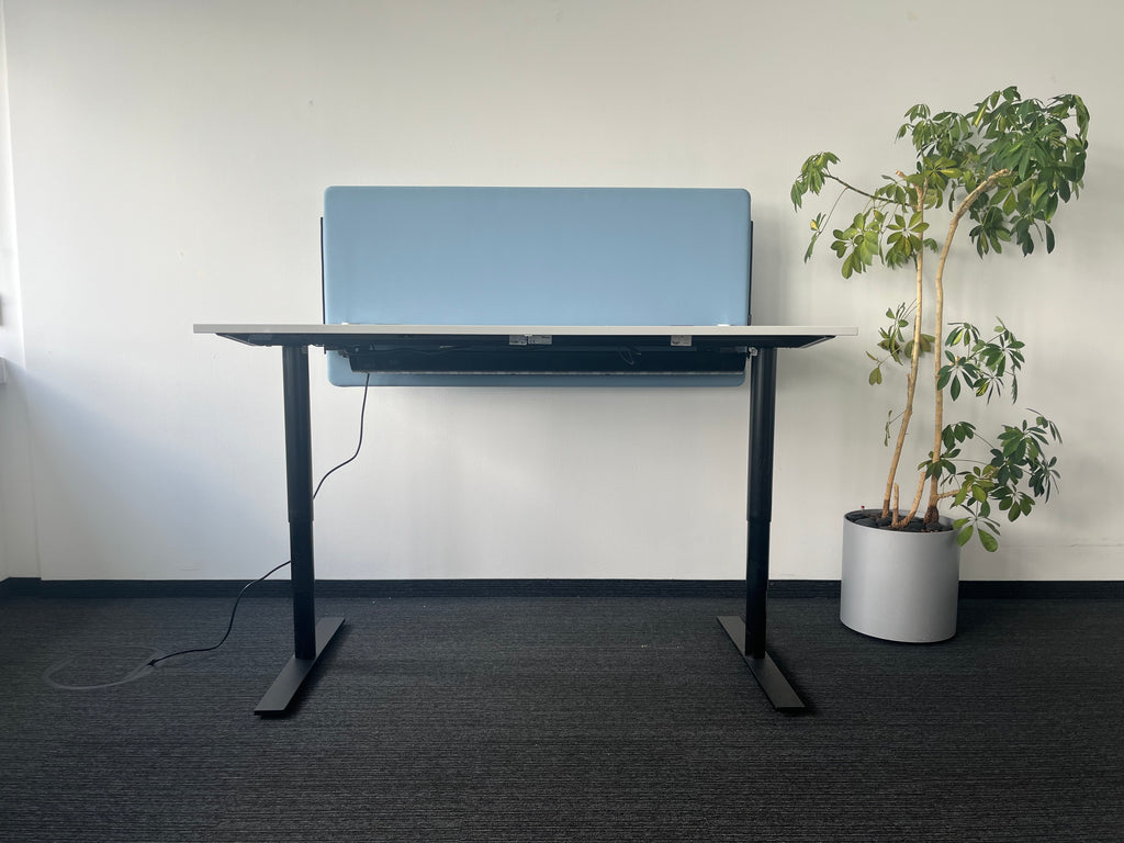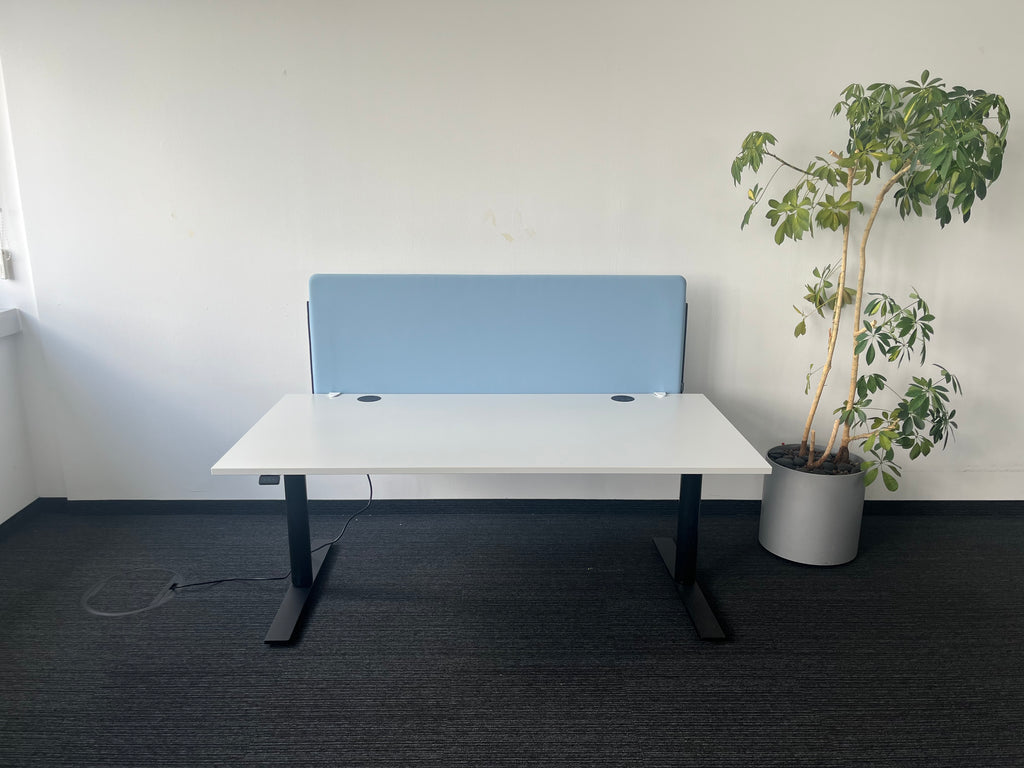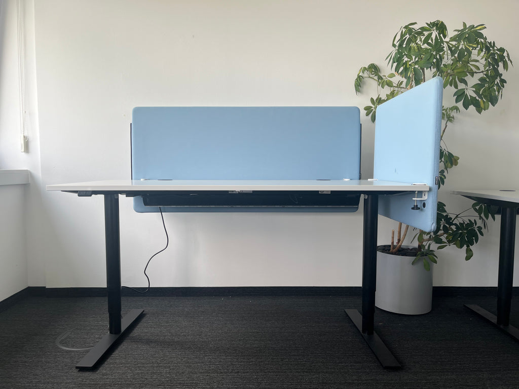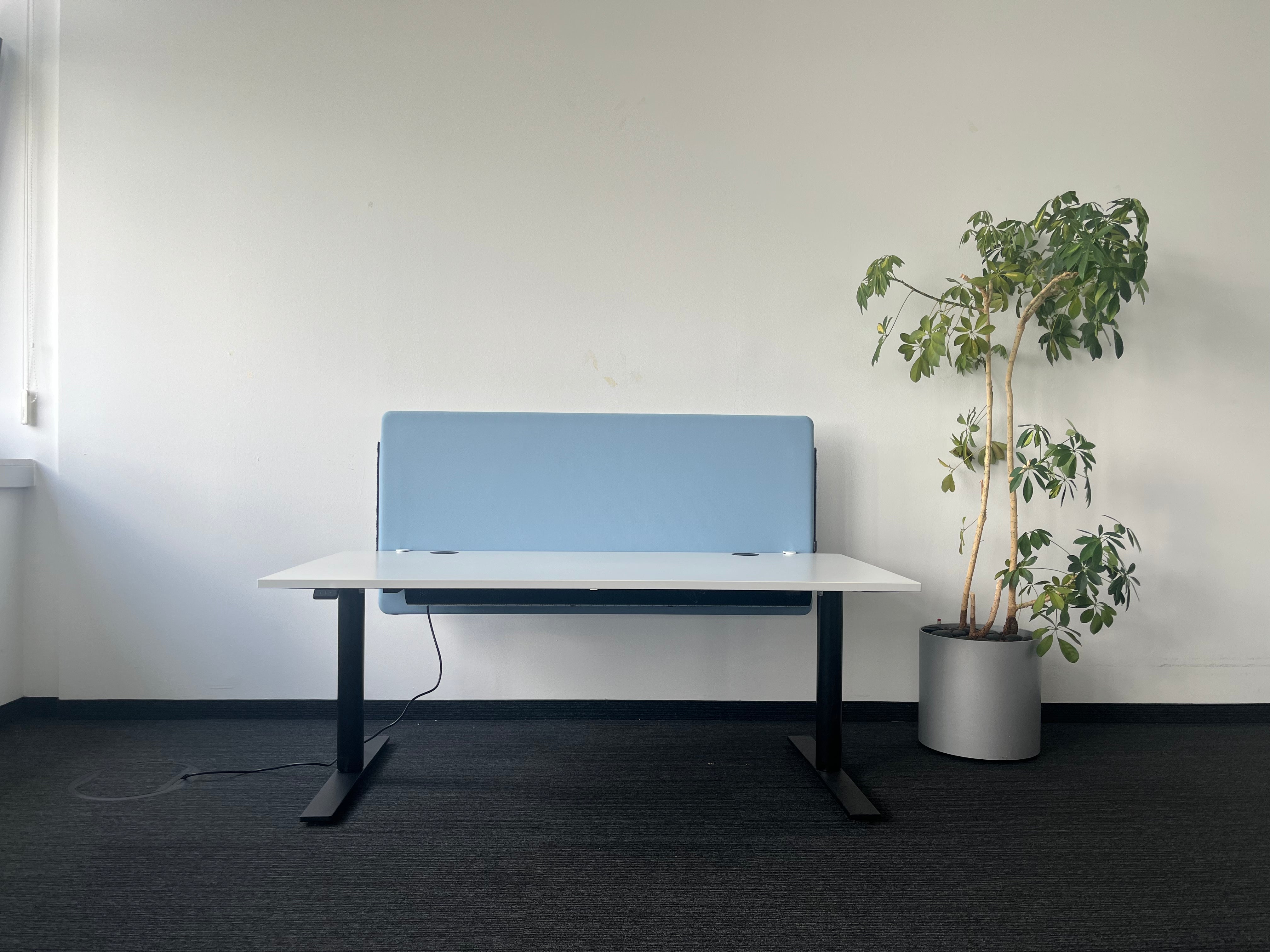 Die Twist 444 Schreibtisch-Trennwand in Hellblau bietet eine moderne und funktionale Lösung zur optischen und akustischen Abtrennung von Arbeitsplätzen. Sie schafft mehr Privatsphäre, reduziert Geräusche und fördert konzentriertes Arbeiten – ideal für Großraumbüros, Co-Working-Spaces oder Homeoffice-Umgebungen.