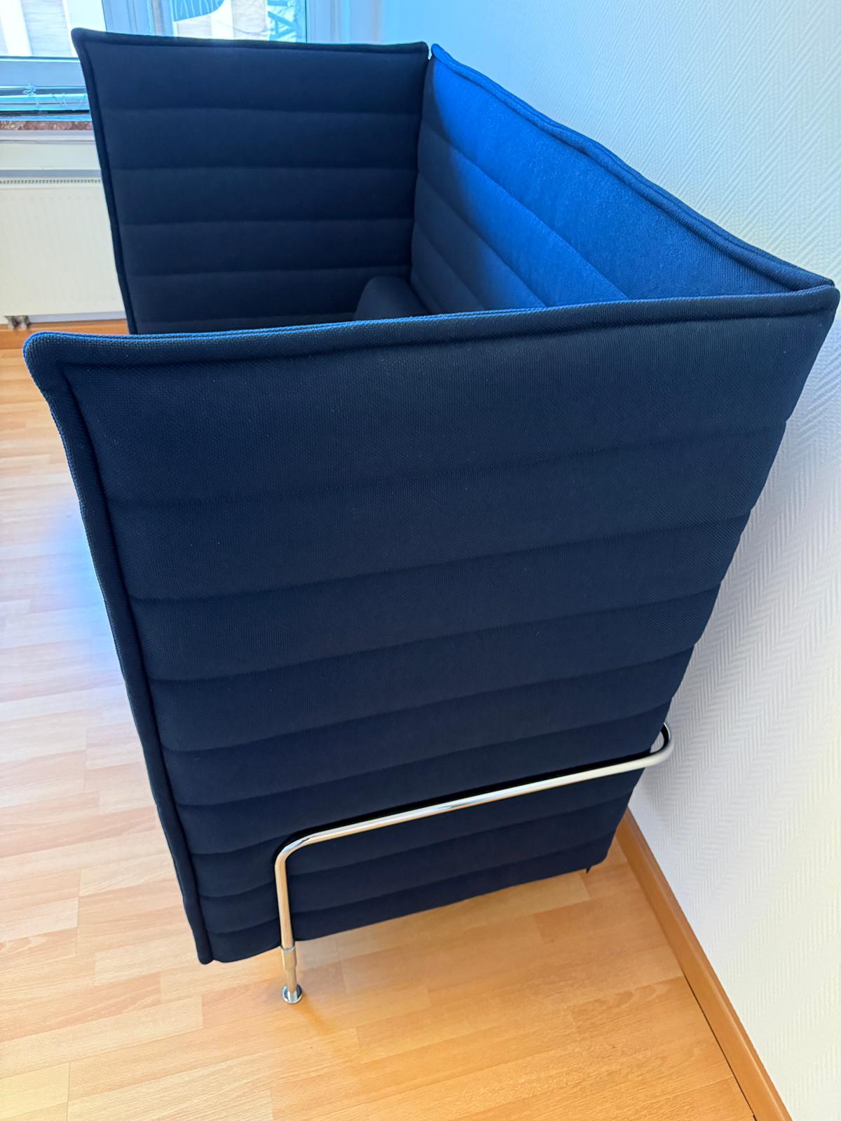 Das Vitra Alcove Highback Sofa Seat ist die perfekte Wahl für moderne Büros, Lounges oder private Arbeitsräume, die sowohl Komfort als auch stilvolles Design erfordern. Entworfen von Ronan & Erwan Bouroullec, bietet dieses Sofa mit seinem hochwertigen Stahlrohr-Gestell und der eleganten blauen Polsterung sowohl ein visuelles Highlight als auch eine angenehme Rückzugsmöglichkeit. Die hohen Rückenlehnen sorgen für eine angenehme Privatsphäre und einen behaglichen Sitzkomfort.