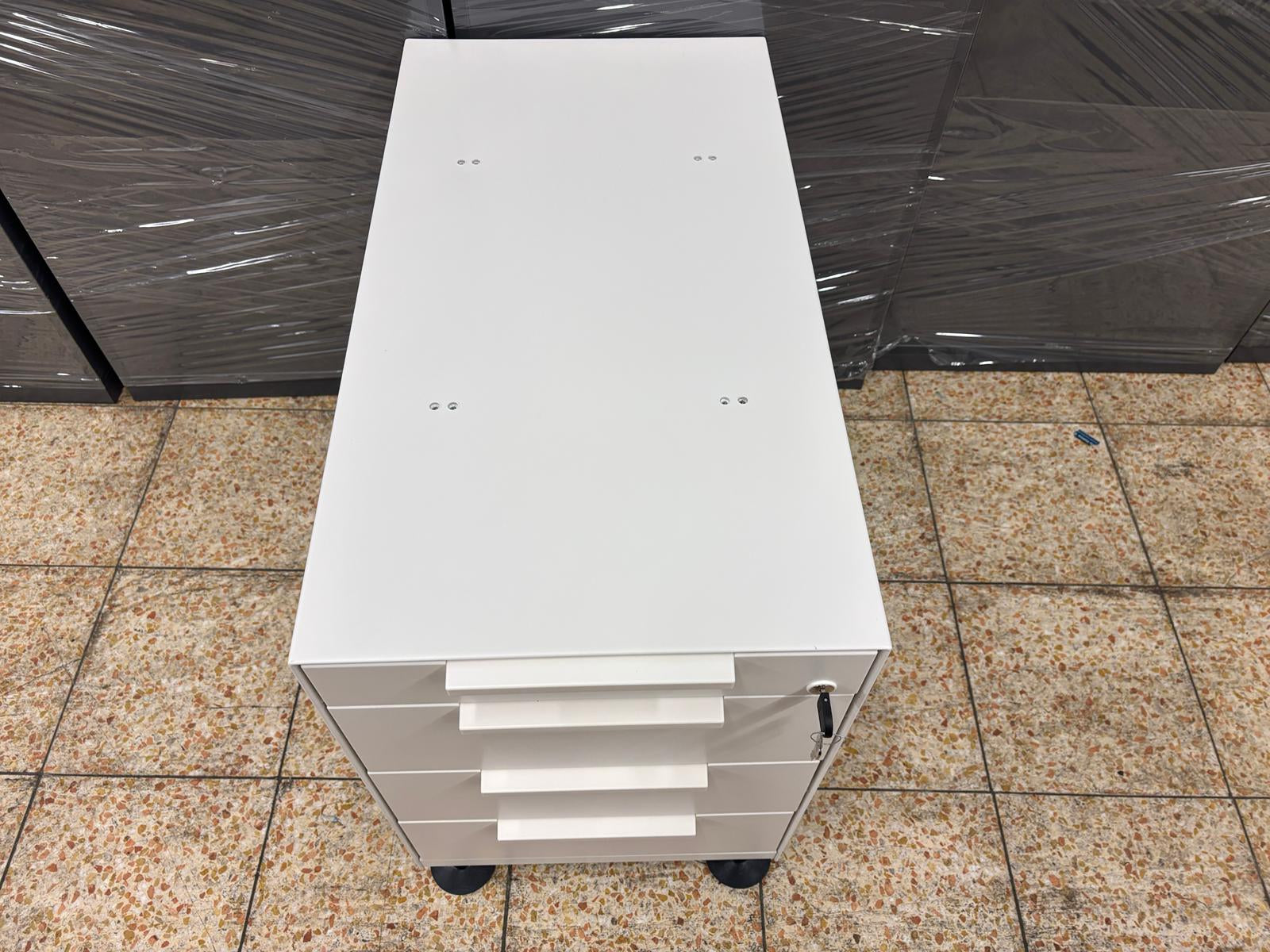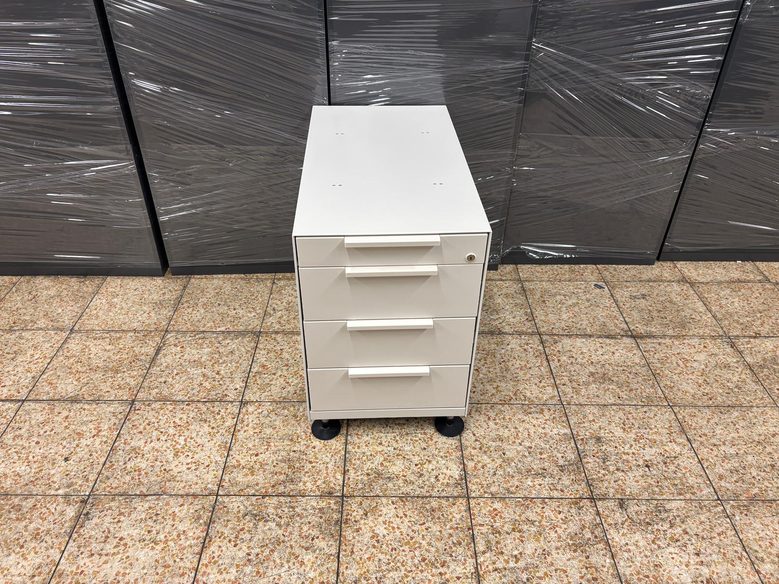 Dank seiner stabilen Bauweise und der hochwertigen Materialien gewährleistet der Container eine langfristige Nutzung. Die schlichte weiße Oberfläche sorgt für eine moderne, professionelle Optik.