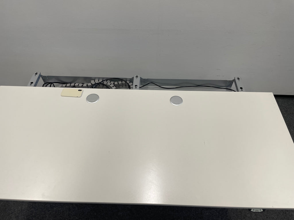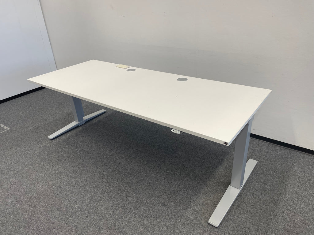 Die großzügigen Tischplatten (wahlweise 160 x 80 cm oder 180 x 80 cm) bieten ausreichend Platz für Computer, Unterlagen und Arbeitsmaterialien. Das schlichte, elegante Weiß fügt sich nahtlos in jede Arbeitsumgebung ein und schafft ein modernes, professionelles Ambiente.