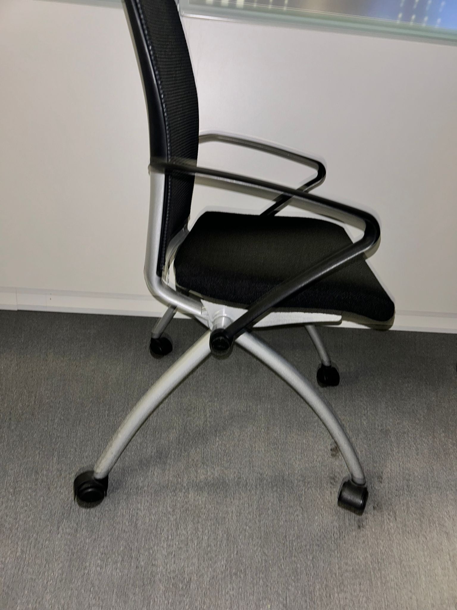 Der Haworth Comforto Konferenzstuhl mit Netzrücken bietet modernen Sitzkomfort für Besprechungsräume, Büros und Konferenzbereiche. Dank seines luftdurchlässigen Netzrückens, der bequemen Sitzfläche und der mobilen Rollenausstattung ermöglicht er flexible Nutzung und hohen Komfort – auch bei längeren Meetings. Der Stuhl befindet sich in gebrauchtem, gutem Zustand und ist ideal für professionelle Arbeitsumgebungen.